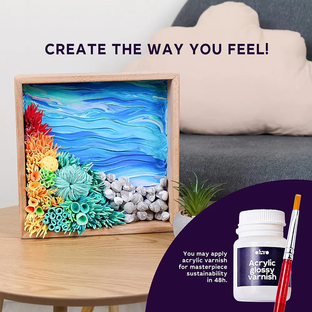 Choose the color you want to start with, pick up the clay with your fingers, and boldly apply it to the canvas. Create your background, then sculpt according to the template and transfer parts of the painting to the base. Feel how art is born under your hand.