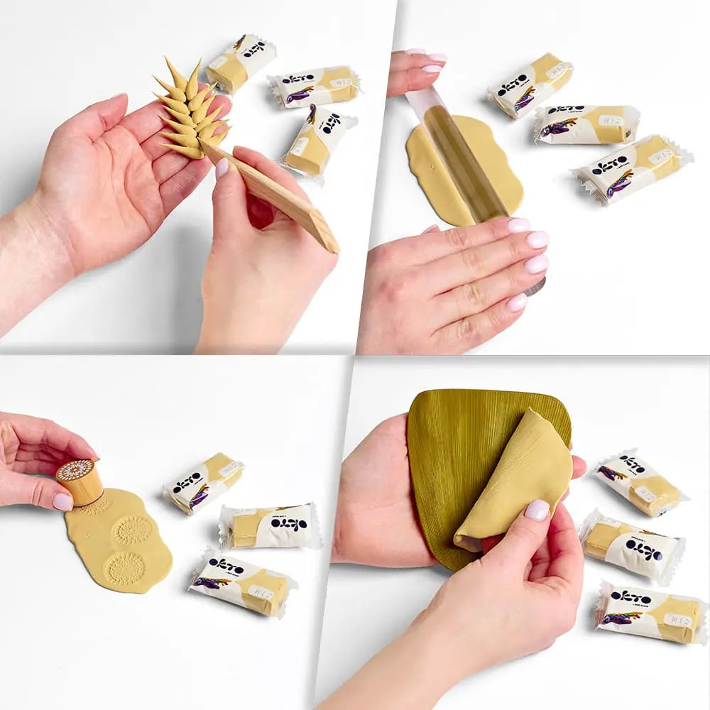 This set will help you bring any ideas to life. Work with the stack, roll it out, apply textures, and use the mold. Then paint the finished masterpieces as your inspiration guides you.